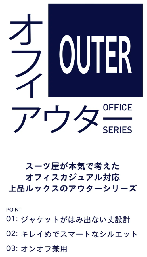 オフィス向けアウターは、基本的にジャストサイズが一番きれいに見えます。